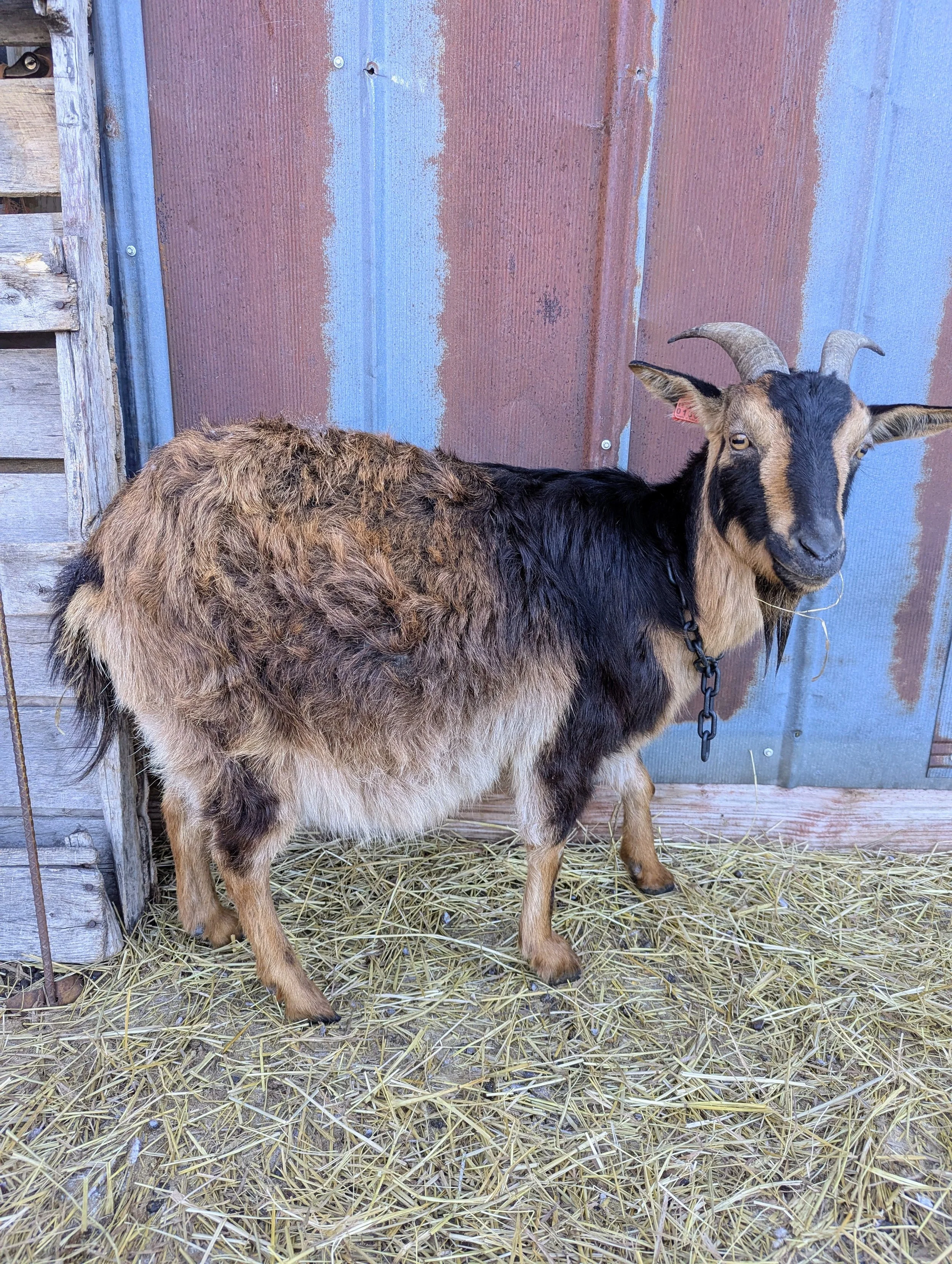 Eartha is a Tepper Line San Clemente Island goat doe. And her pregnancy belly is getting very low to the ground. She has been a great goat mom in the past with no birthing complications.